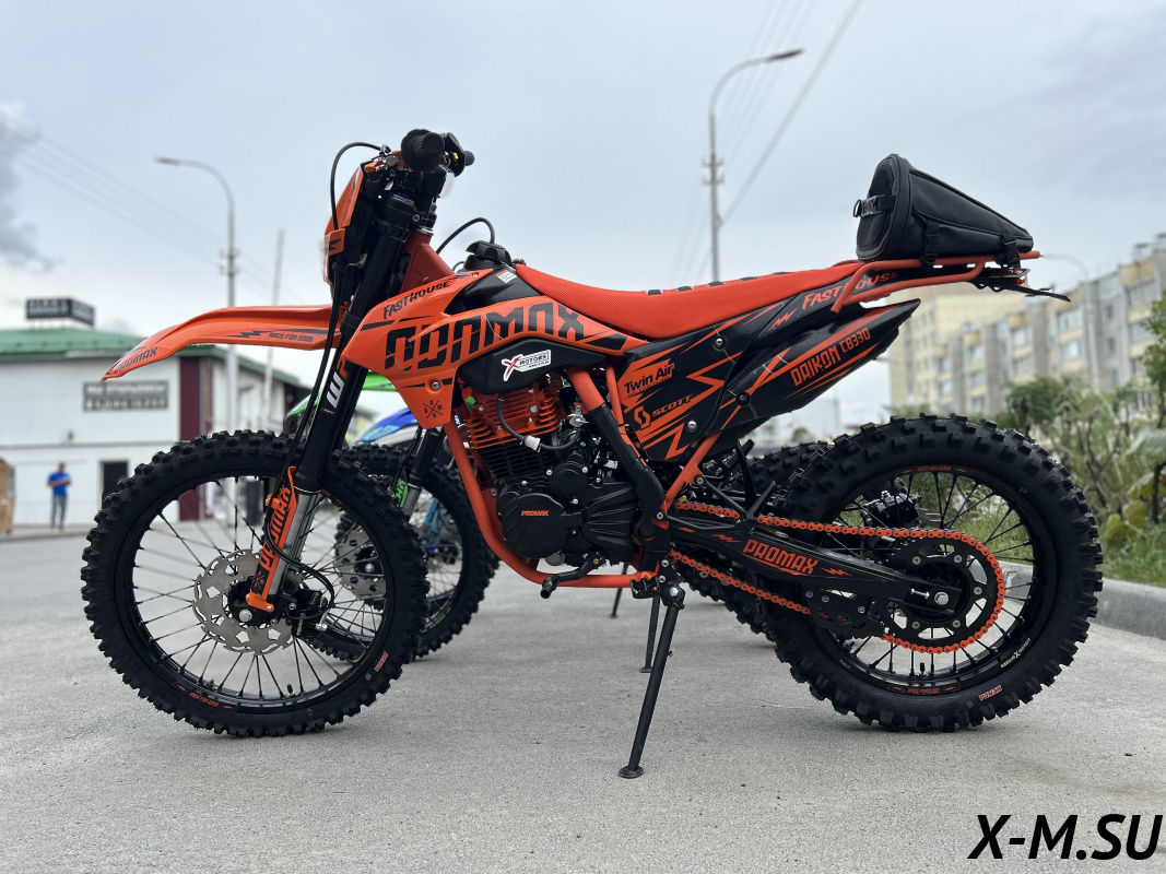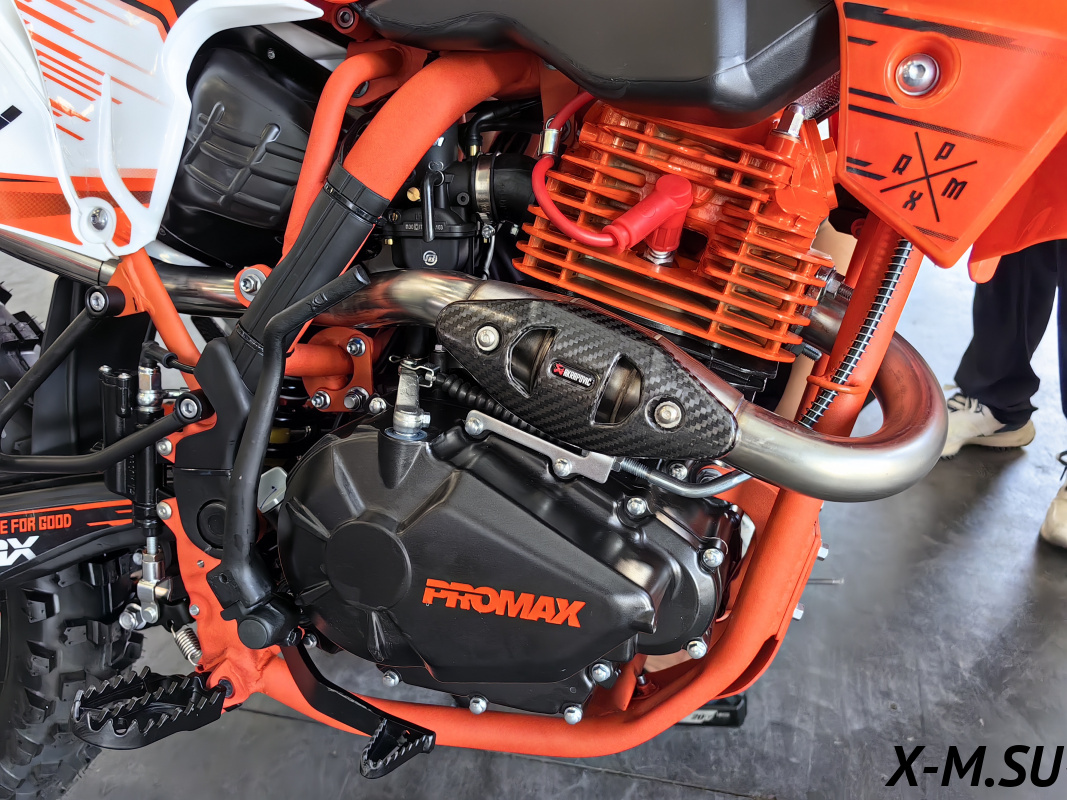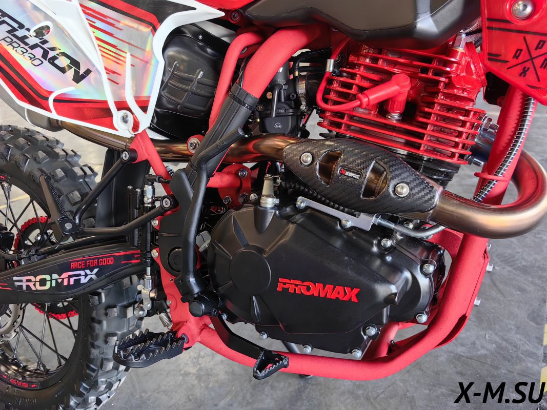 Встречайте PROMAX PR330 – покорителя бездорожья ! PROMAX PR330 - это выбор как продвинутых новичков, так и опытных райдеров. Мощный и надежный двигатель 175й с балансиром, 5 передач (Больше низов чем на 6ти передачной версии +1 диск в сцеплении) с воздушным охлаждением в паре со спортивным карбюратором Nibbi Racing BLACK PE30 и выхлопом Akrapovic Exhaust System гарантируют приятный выхлоп, стабильную работу и мощность 28 л.с. Рычаг сцепления имеет флажок для легкого выжима сцепления и правильного положения троса для максимального комфорта и полного контроля работы двигателя.