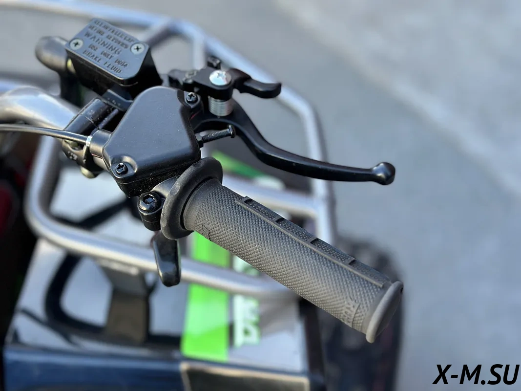 Гидравлическая тормозная система с раздельными контурами и вентилируемыми тормозными дисками Nippon (Hitachi) отвечают за эффективное торможение. Предусмотрена регулировка хода курка газа – если вы учите своего ребенка общению с техникой. Так-же есть кнопка остановки двигателя.