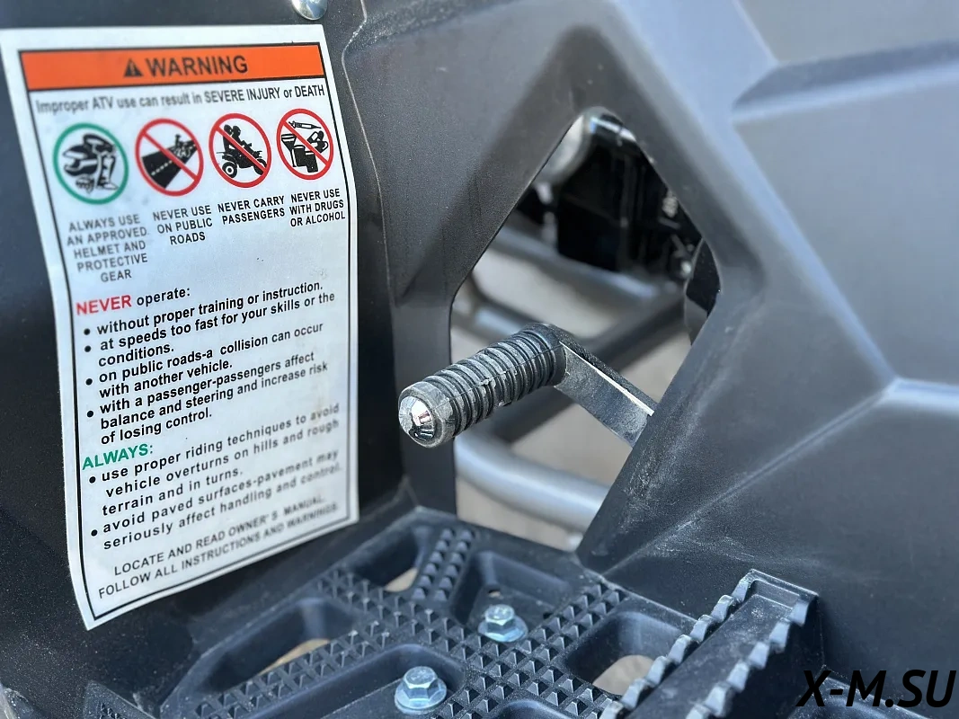 Дизайн квадроцикла продуман для любителей пересеченной местности. Высокий клиренс, глубокие колесные арки, закрытые подножки – максимальная защита от брызг и грязи, чтобы ничего не отвлекало от намеченной цели. Галогеновые лампы с отражателем направленного типа от General Electric – лучший выбор для любителей бездорожья. Светодиодный габарит-стопсигнал для безопасности. Багажники с декоративными накладками для большего комфорта и уверенного внешнего вида.
