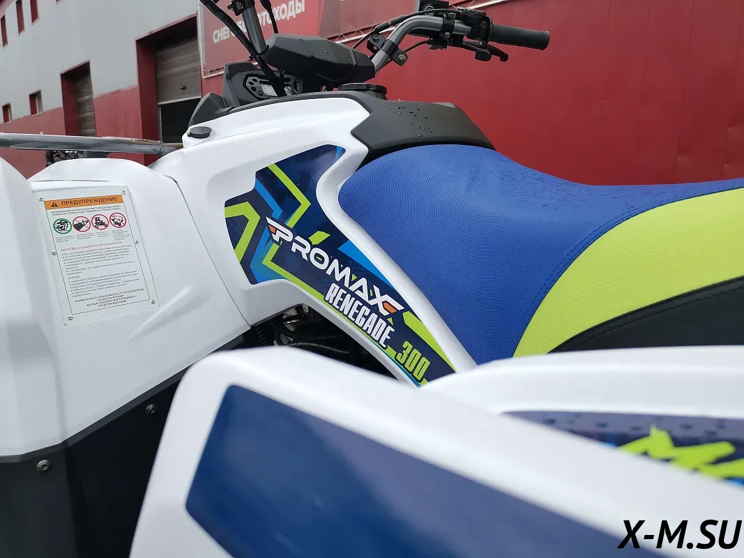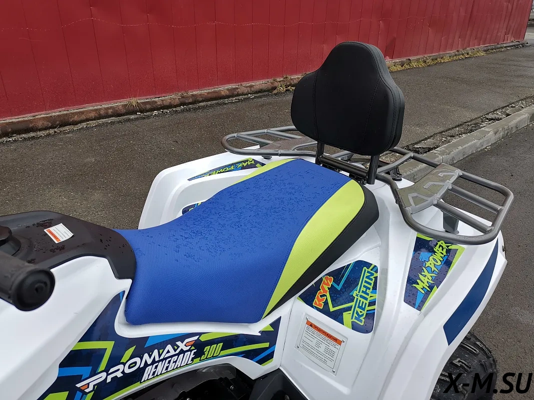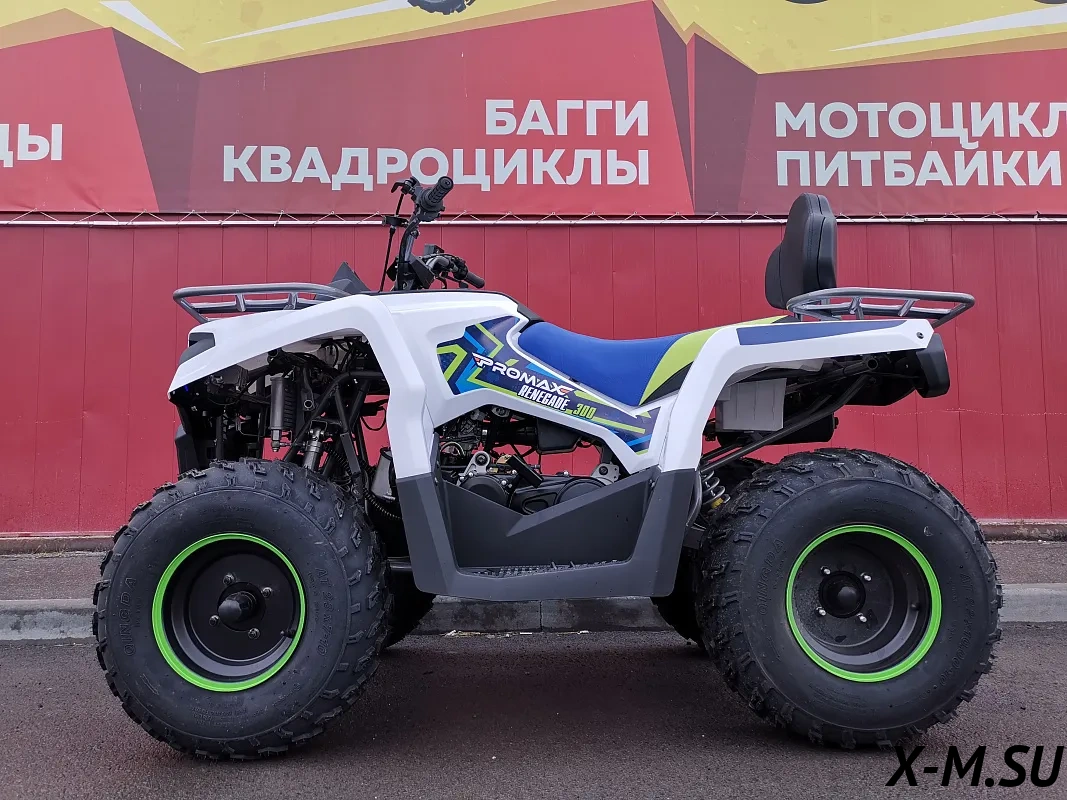 Чёткий квадр! PROMAX RENEGADE 300 - зверь! Мощность 21 л.с. - чувствуется сразу. Вариатор Malossi - это вообще песня, тапку в пол - и он прёт как угорелый. Тормоза норм, правда, первый раз чуть не вылетел на повороте, привыкать надо. Качество сборки на уровне, ничё не люфтит, не скрипит. Запчасти, говорят, доступные - это большой +! В общем, я доволен как слон! Однозначно рекомендую всем, кто хочет получить мощный и надёжный квадроцикл за свои деньги.