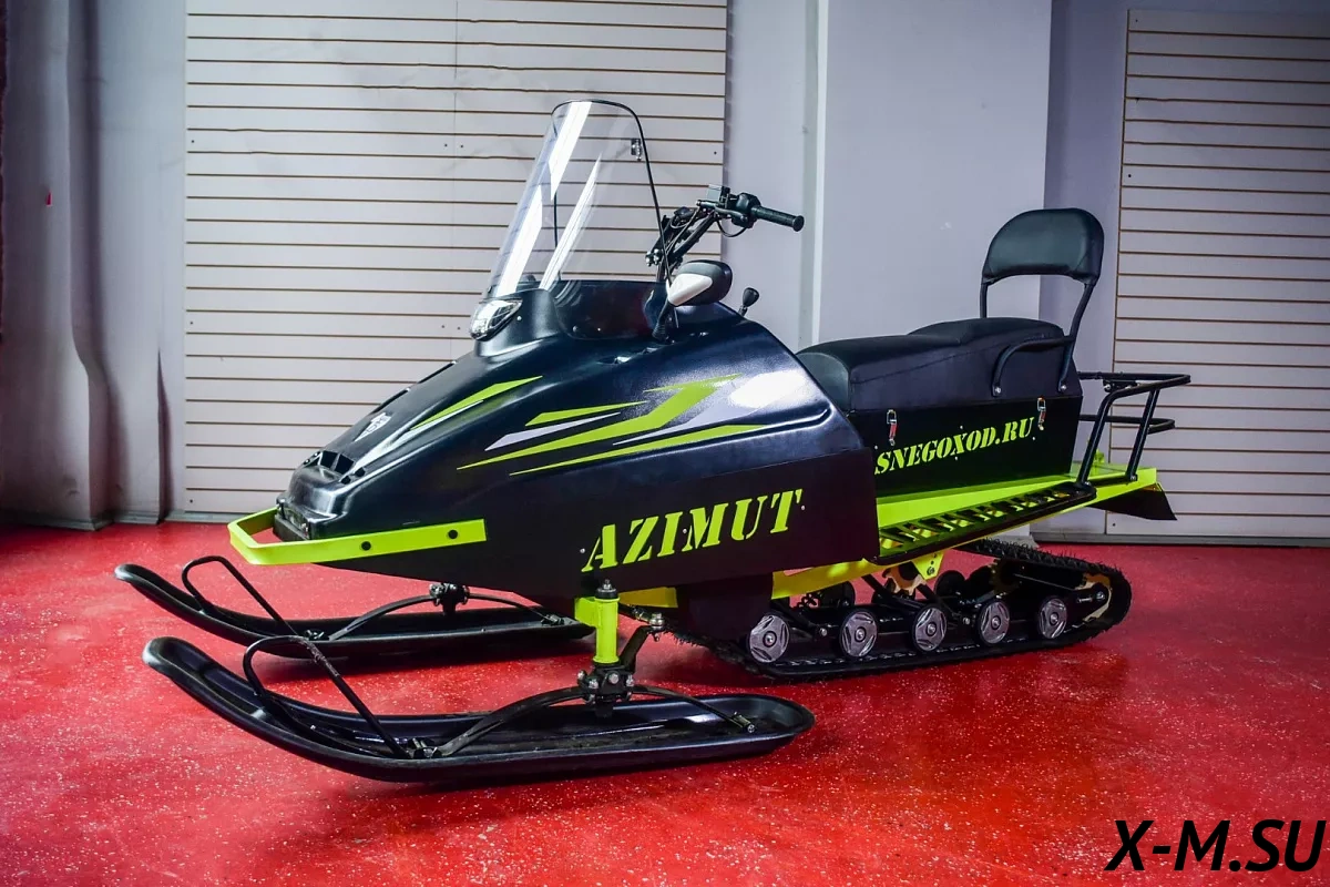 «Азимут CS» также имеет классическую снегоходную компоновку с передним расположением двигателя. Он надежен, прост в обслуживании и ремонтопригоден, обладает хорошими тяговыми характеристиками и показателями проходимости.
