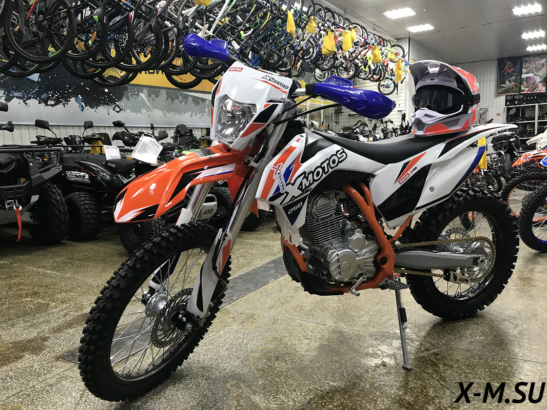 Купил себе X-Motors 250 Pro-Sport - супер! Мощный движок, отличная управляемость. Рама из стали - надежная. Колеса 21/18 - идеально для бездорожья, по асфальту тоже отлично! Крутой дизайн, привлекает внимание. Единственное, что немного расстраивает - воздушное охлаждение, но в целом, все гуд! За свои деньги - отличный вариант. Пожалуй, лучшее приобретение за последнее время. Только что-то с тормозами пока не очень понятно, нужно понаблюдать.