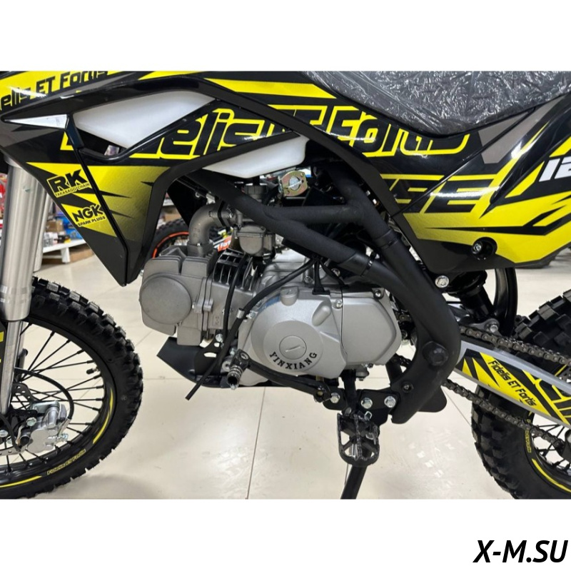В основе конструкции питбайка Fidelis Et Fortis SE125E лежит проверенная стальная рама, в которой установлен 4-тактный двигатель YX с воздушным охлаждением рабочим объемом в 125см3. Возможности силовой установки питбайка позволяют выдавать чуть больше девять «лошадей» максимальной мощности, и этого показателя с головой хватает для большинства локаций применения мототехники этого класса.