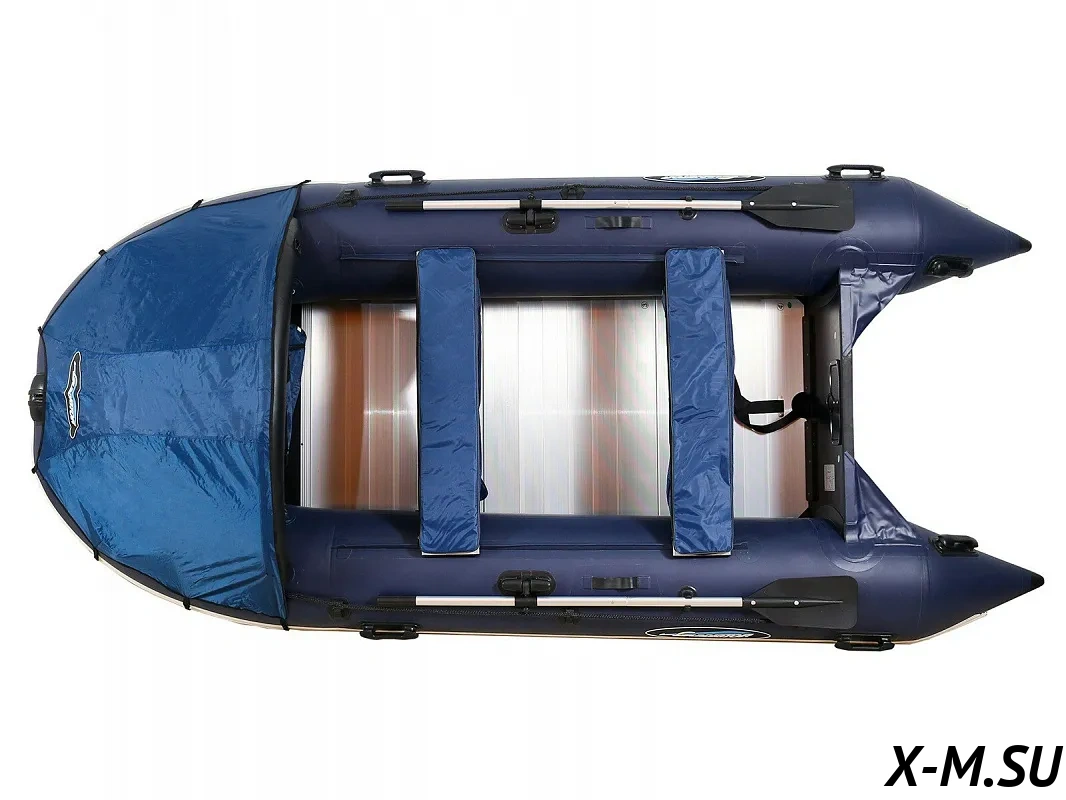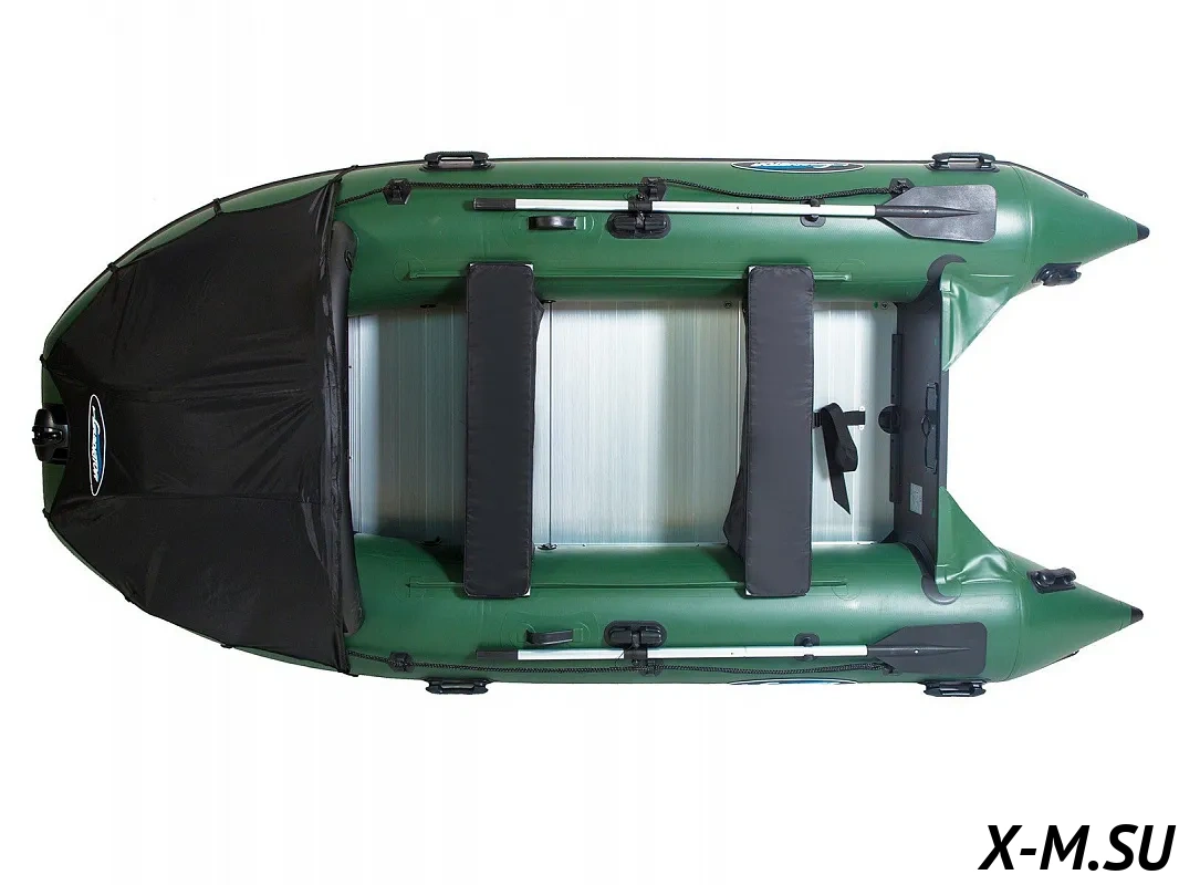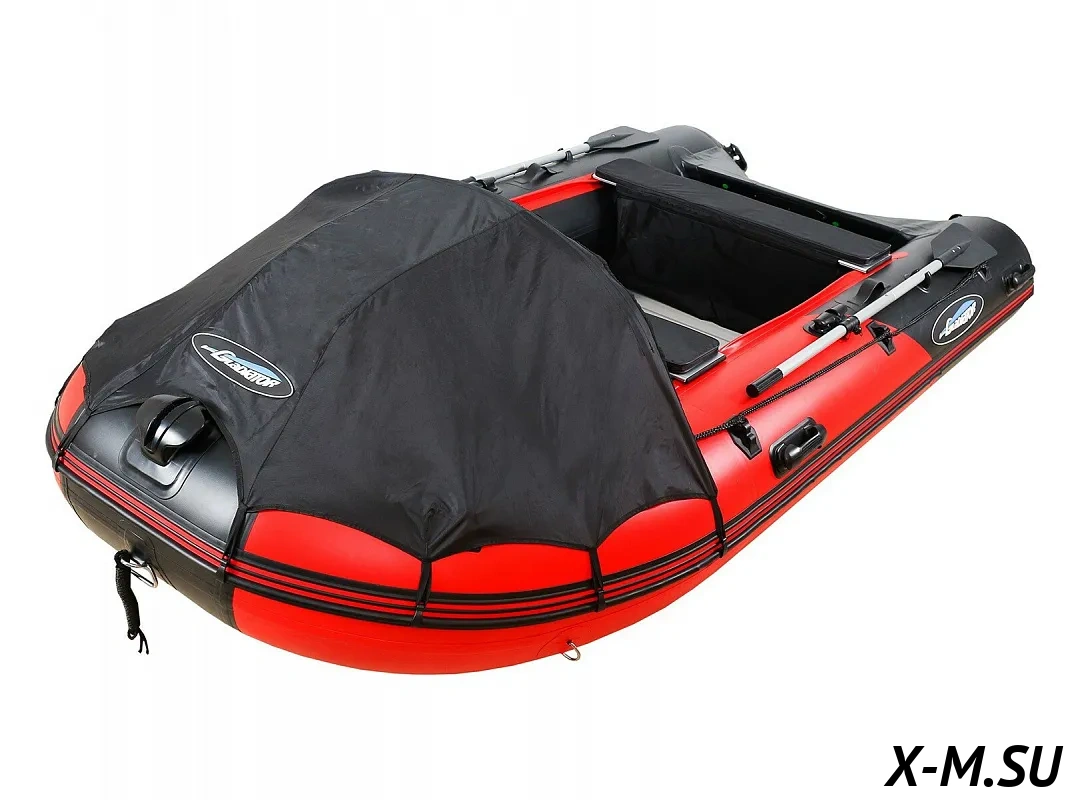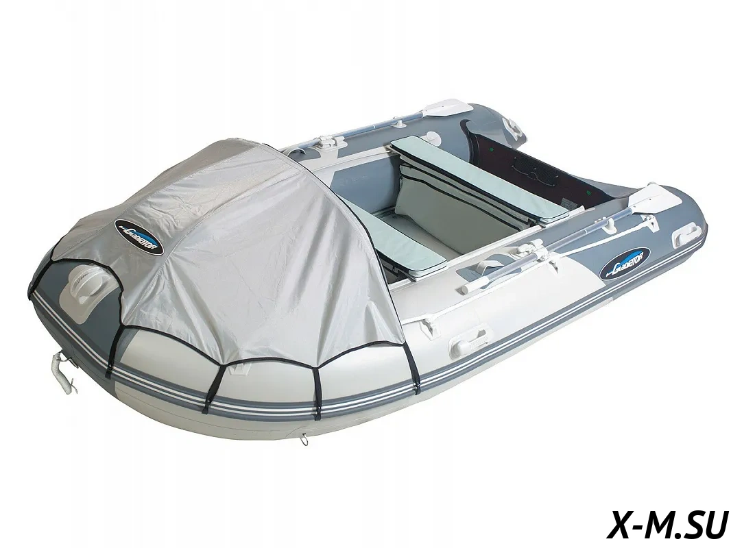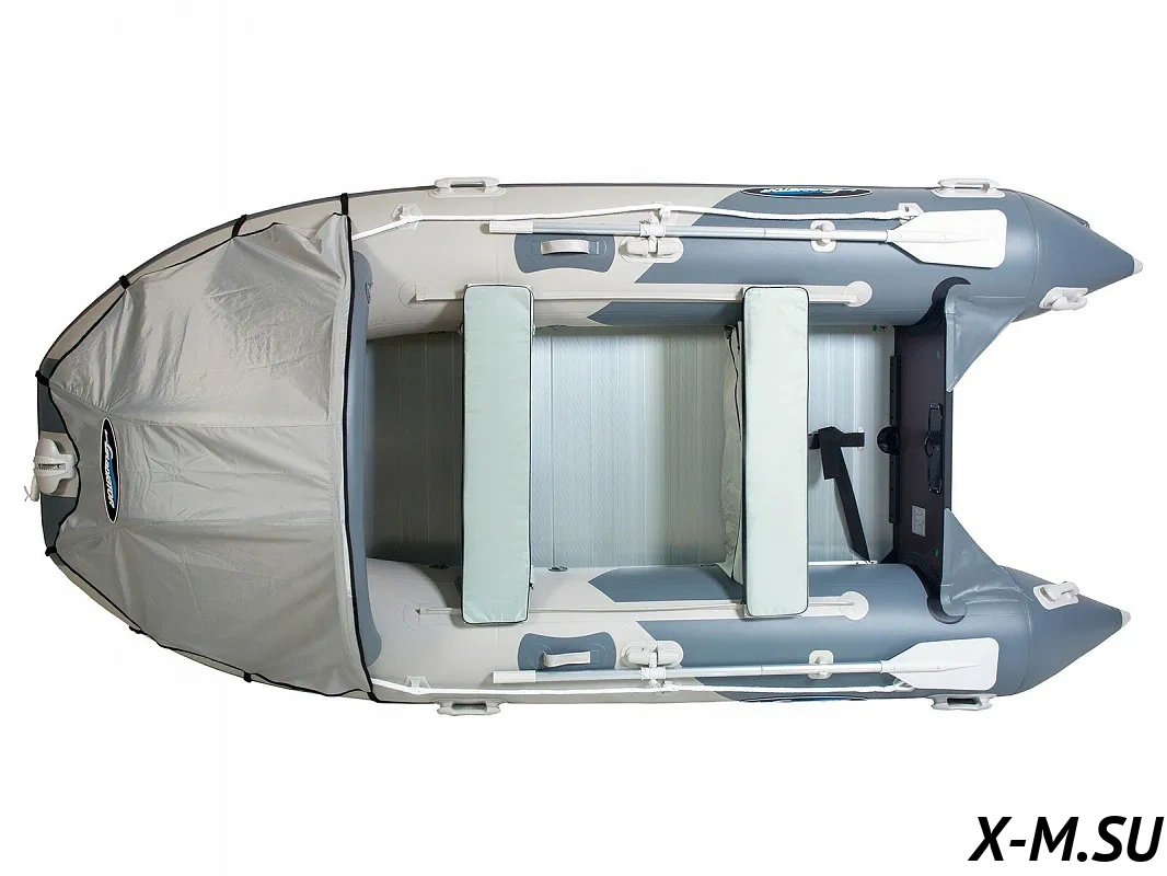 Ее отличают ПВХ высокой плотности 1350 г/м2 (и баллон, и днище) и дополнительное усиление 5 мм полиуретановой лентой (ширина брони по килю - 8 см, по баллонам - 20 см).