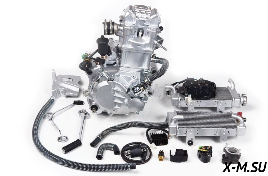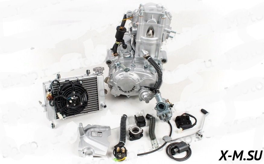 Двигатель 250см3 167MM CG250 (67x65) водянка, грм штанга, 4ск.+реверс, полный комплект+радиаторы